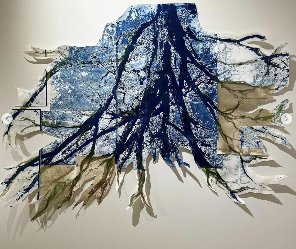 Incorporating elements from photography, painting, and fiber arts allows me to expand upon the foundational principles of print. Crochet offers a meditative, healing, and tactile mode of Connections—both literal and metaphorical—are vital. This approach requires surrender—welcoming unpredictability as I push, pull, and mold chaotic processes, uncovering a calm and inherent order within.